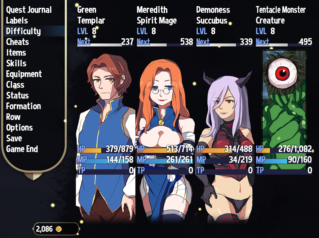 Not even the porn is good. The game suffers from LOQO syndrome where the art style isn’t consistent. Some of it is decent like the one with the priestess with the purple hair and some of it is a massive garbage fire like pic related. There’s a lot of different scenes in the game but so many of them are just bad and you won’t even be able to see half of them depending on what gender and origin you choose so that the number of actually good ones you’ll see on a single playthrough is around 15. On a personal note, the fact that the game has slurpy squelchy jello noises during sex is annoying and the lack of an option to turn it off even more so.