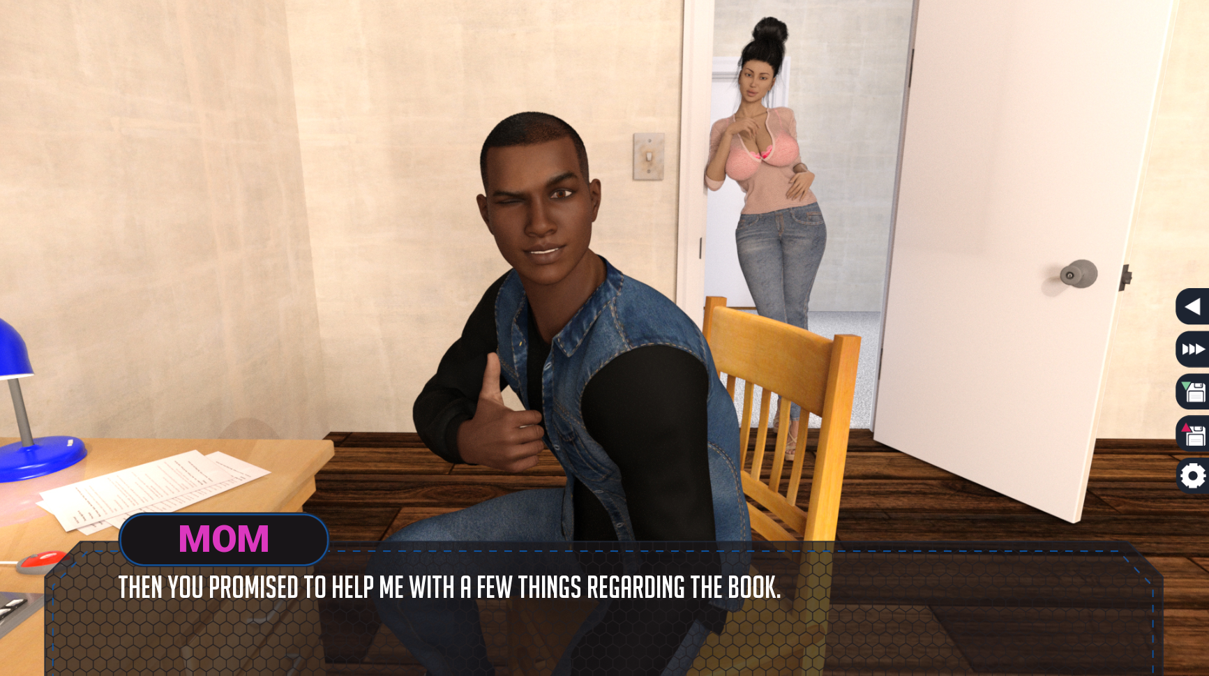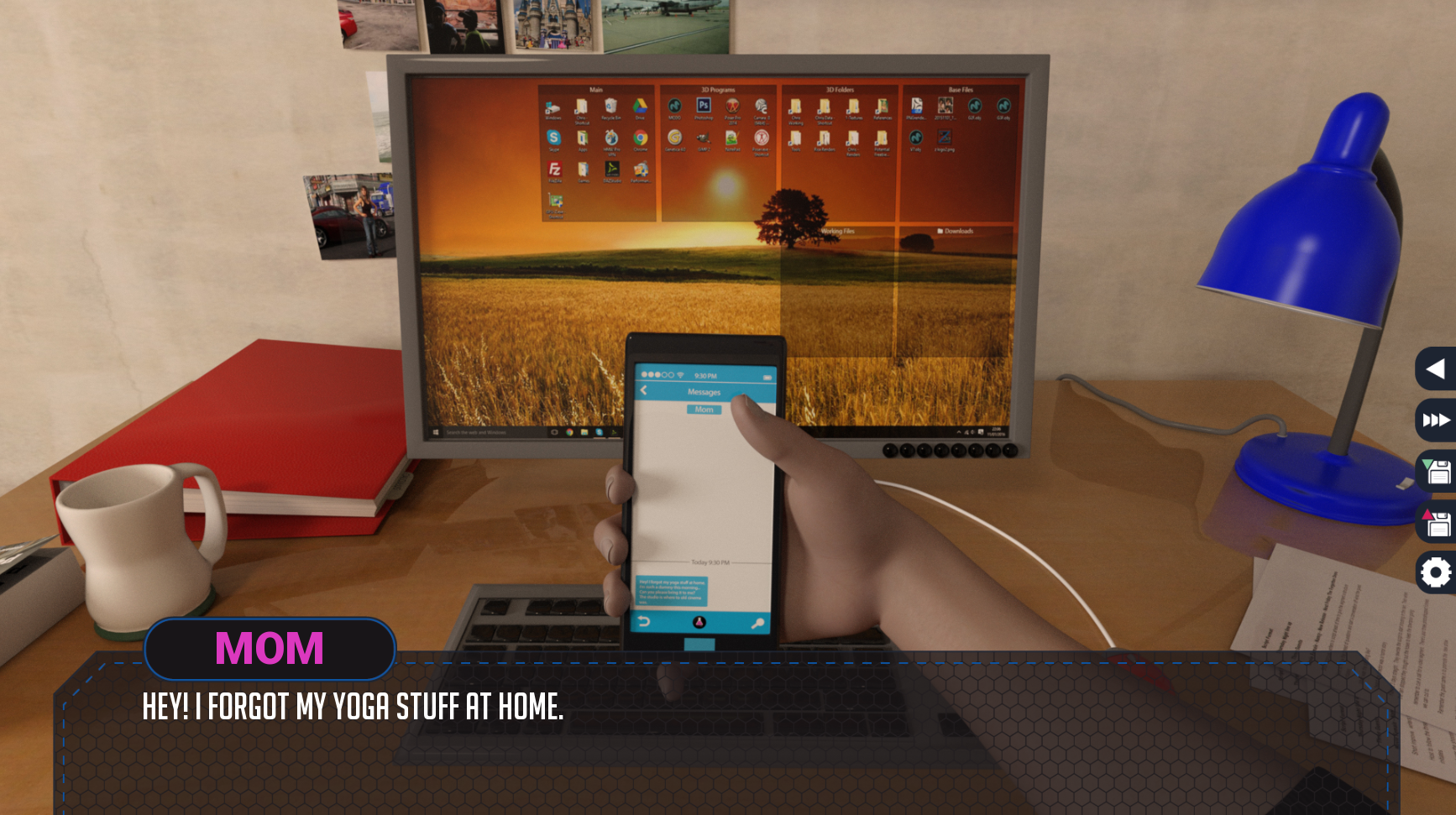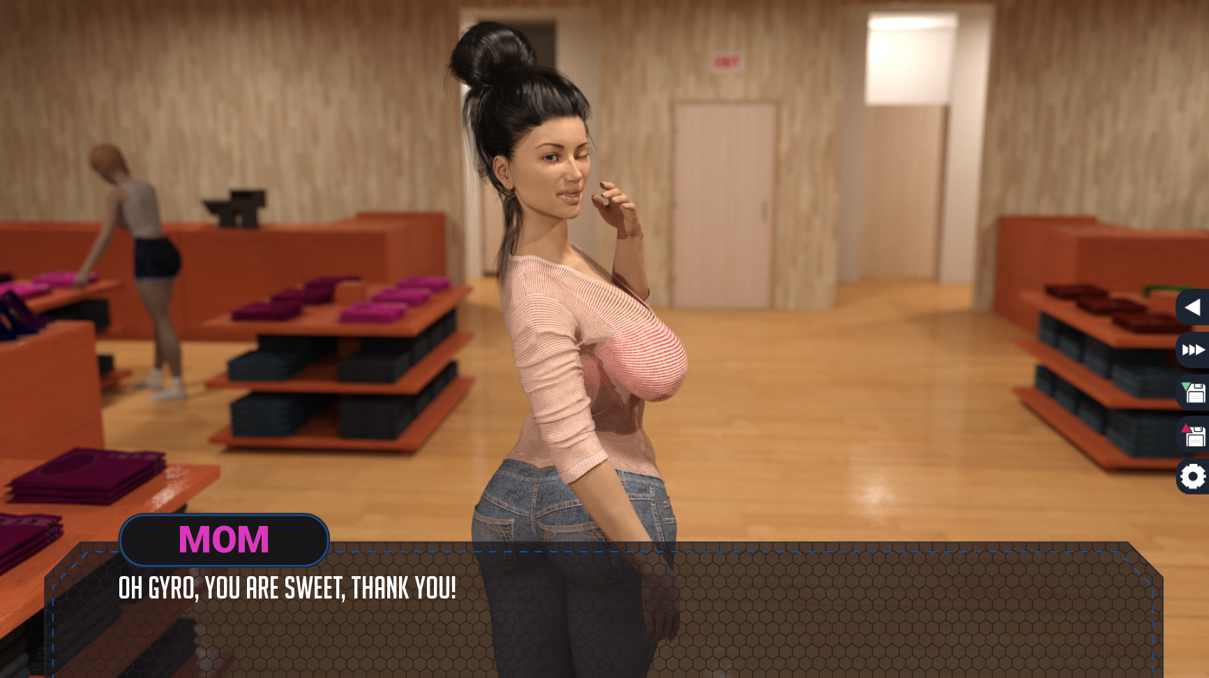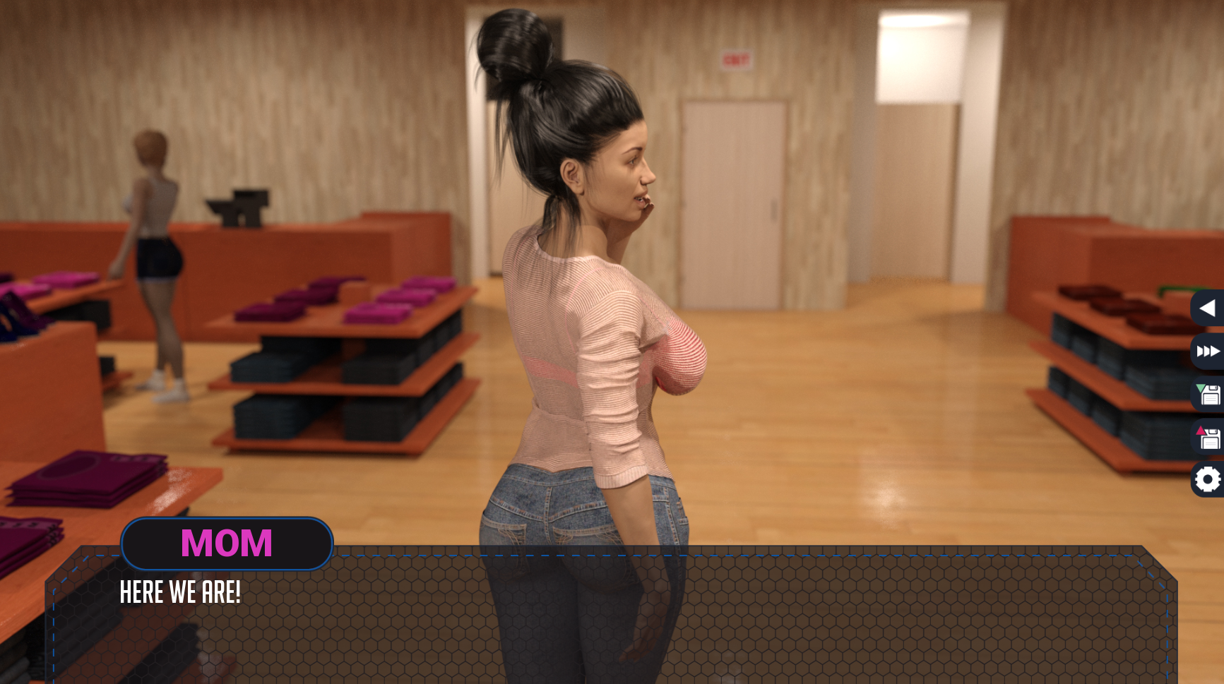 After getting a game over and being forced to look elsewhere I found my mom. It appears her yoga clothes are more professional looking than her regular ones.