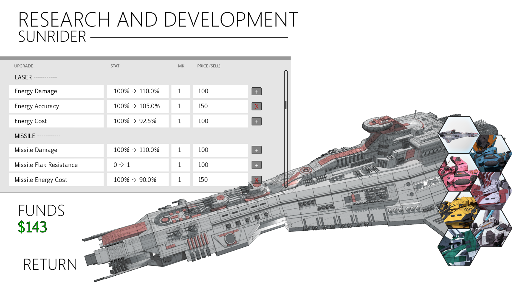 This difficulty is compounded for me by the fact that the game uses my least favorite kind of upgrading system. Small incremental stat upgrades. I’m sure there’s nothing inherently wrong with this kind of system but I just don’t have the head for it. I’m fine choosing between different upgrade trees for things in games that allow me to and even in this game I can sometimes set a goal like “I want to be able to fire my kinetics twice in a turn so I’ll increase my energy pool and reduce kinetics cost until I can do that” but after I do that I’m left clueless as to what to do next. Towards the end of the game once you’ve unlocked all of the ships you have 86 (I counted!) different stats to choose from to dump your money into and the choice can be a bit daunting. There is a store in the game that does a method of upgrading that I like much better. I can go and buy a new ability or overhaul for one of my ships for a large amount of money but there are only about 10 things to buy there before I’m back to purchasing very small stat increases.
