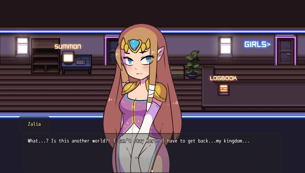 Plot is a standard “Inherited X from your magic father/grandfather and must learn how to use it” affair. In this case you inherited an…inter-dimensional brothel/human trafficking hub? Yeah, turns out your old man kidnapped fictional characters from their dimensions and made them work as whores for weebs. Naturally all of these characters are legally distinct original characters and are in no way inspired or copied from existing media