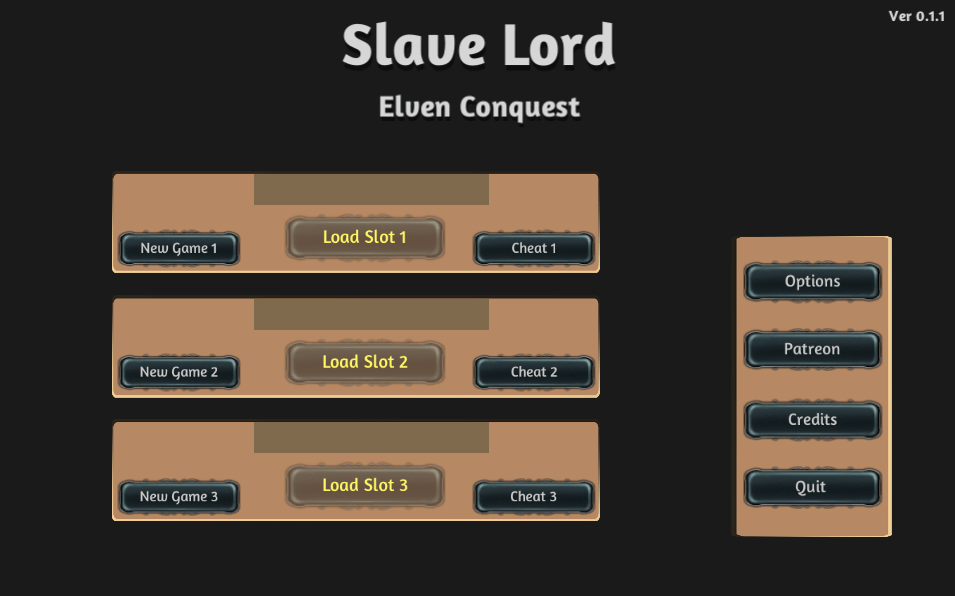 Well this looks good. I always like dabbing on uppity knife ears. Lackluster menu aside I think this might be pretty fun. I was a bit disappointed when I found out it was last updated in September and figured it was dead. Did some digging and found out that not only is it not dead but it’s made by Pink Tea Games, who’s been updating the game on their Patreon. Currently they’re on V.1.4 and as usual the latest version is a patreon exclusive. Unfortunately for us they also aren’t willing to share any of their older versions for free. Despite mentions of a public release coming out a month after each Patreon release only V.1.1 is available online for free. So because I like you I dug around and found V1.3 on a sketchy games site.