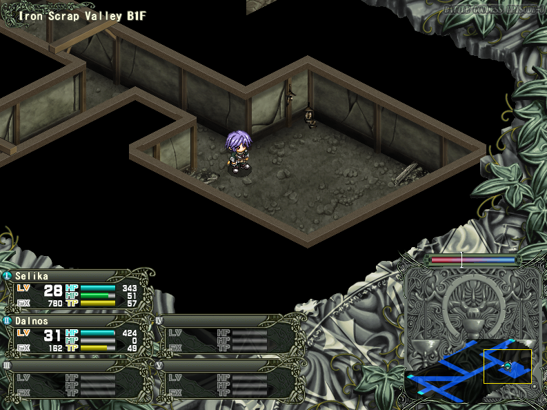 Once you enter a dungeon the game shifts into an isometric perspective and you control Selika. The dungeons aren’t grid based like Rance VI but instead you can move however you want with the mouse. Dungeons are basically big mazes with random encounters, points to fully heal you, chests with items, and occasional teleporters and lever puzzles. You can escape dungeons at any time using your coward amulet so going deeper is never a big risk. You can also use those heal points as much as you want so hanging out next to one and grinding encounters is easy. The design of the dungeons is lacking. They’re pretty much just hedge mazes with different skins.